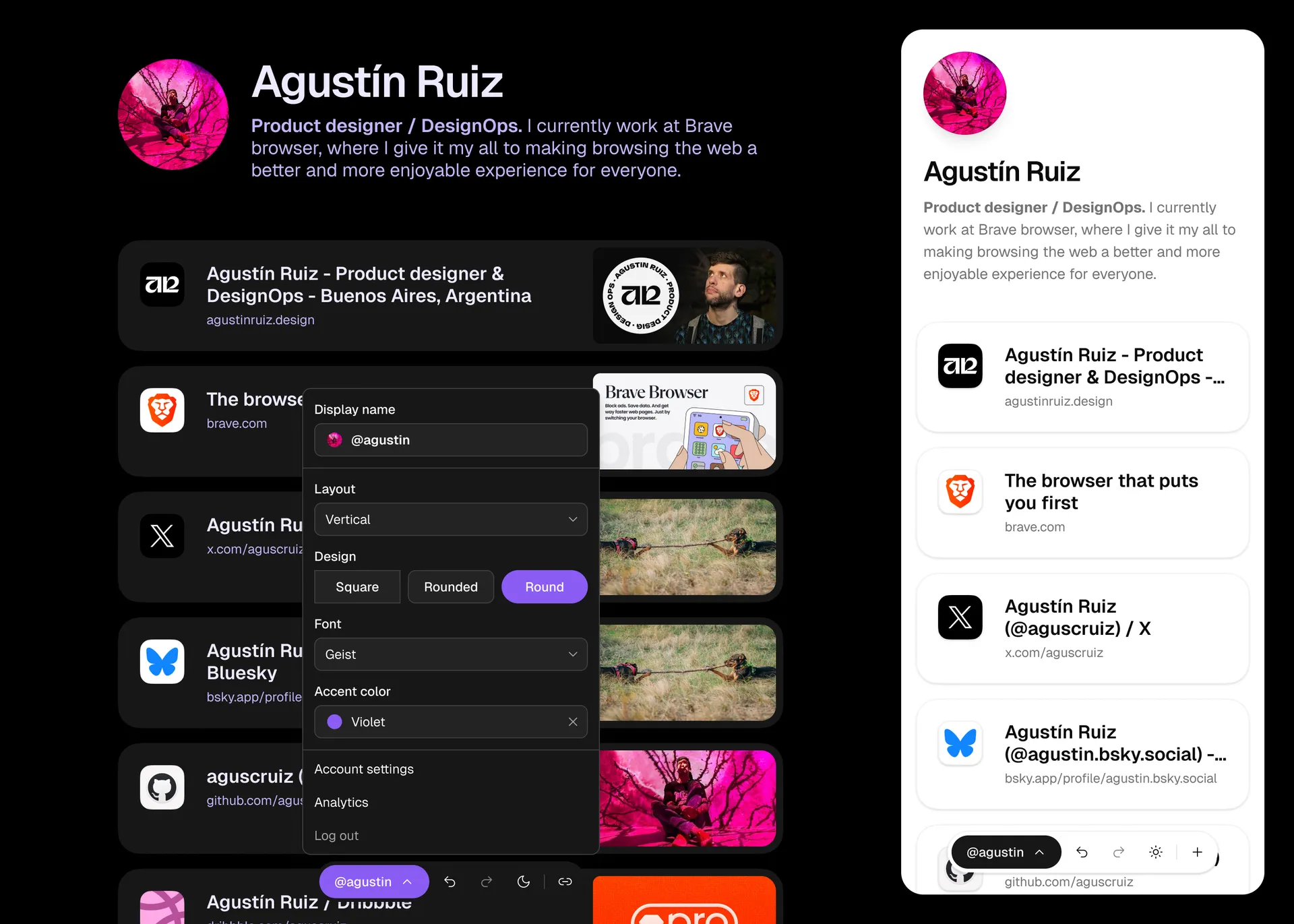 Users will have guided but meaningful ways to customize their pages, changing things like: accent colors, fonts, and even the general "roundness" of the elements in the page.